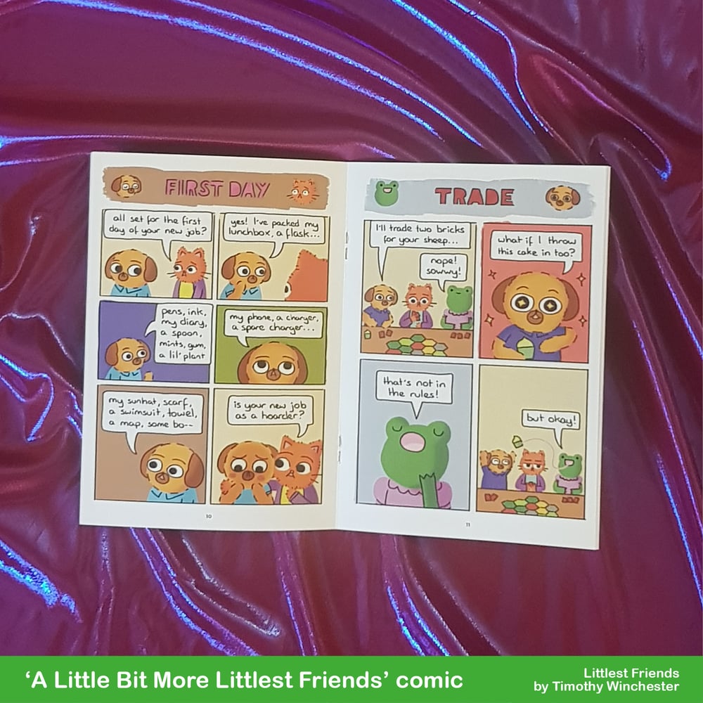 The second Littlest Friends comic I made. This one includes 14 comics that tackle pressing matters such as selfies, emojis, and whodunnits.