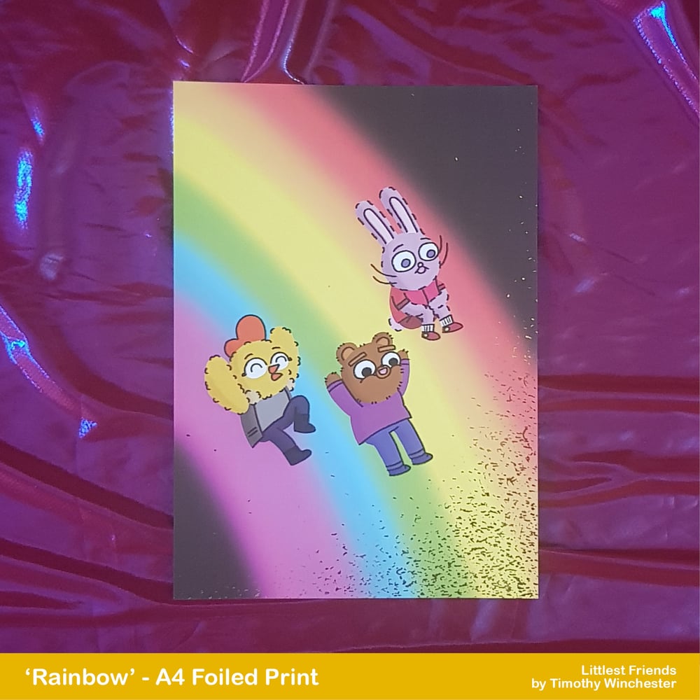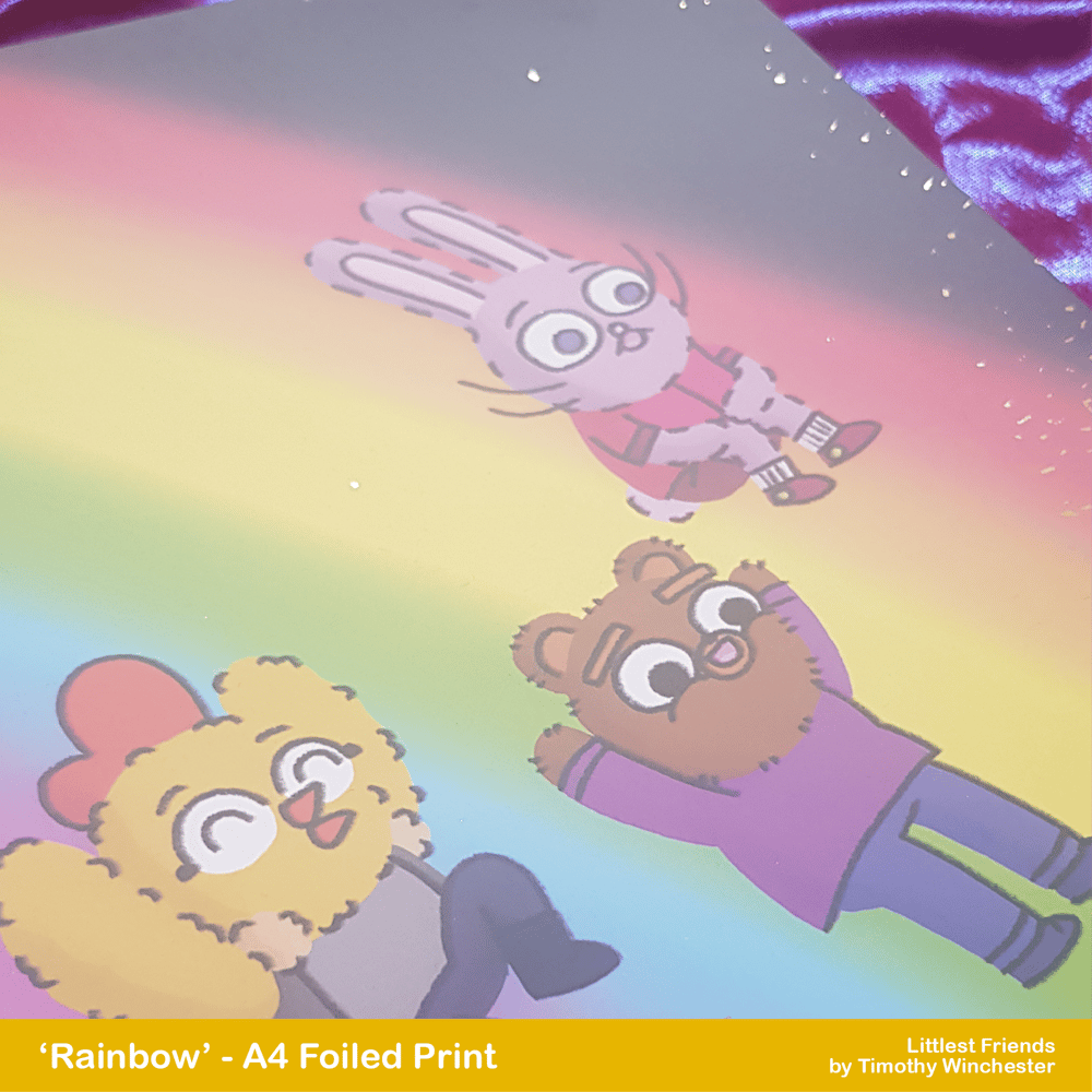 Rebeakah, Ted and Bunbun and sliding down that rainbow and... well, I'm not sure what happens after that but there's a lot of gold sparkles so that's exciting.