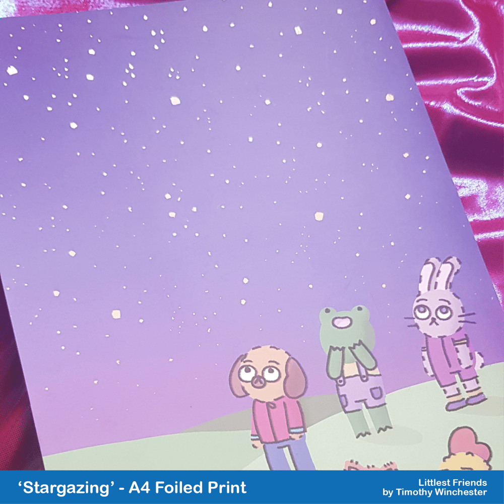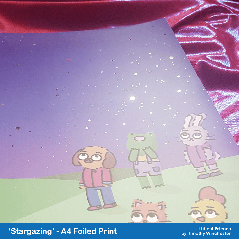 This A4 print comes on white 380gsm matte laminated stock. The foil colour of the stars is silver.